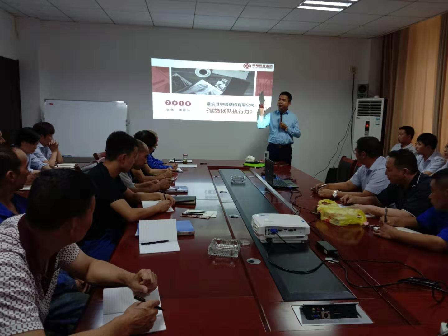 為不斷提升公司全體管理人員的管理創(chuàng)新能力、技術(shù)創(chuàng)新能力、市場開拓能力,努力打造一支具有較強經(jīng)營管理水平的人才隊伍,2019年8月15日淮寧鋼結(jié)構(gòu)有限公司在公司第二會議室舉辦了以提高執(zhí)行力為重點的企業(yè)管理知識培訓(xùn)班。